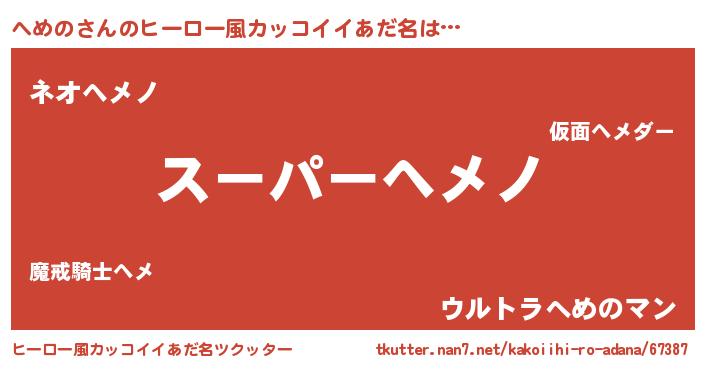 | 男性向けラノベタイトル風あだ名 | 『ヘメノスレイヤー』『へめのの憂鬱』 |