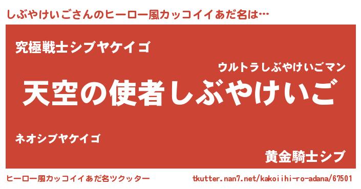 | 男性向けラノベタイトル風あだ名 | 『しぶやけいごに滅ぼされるだけの簡単なお仕事です』 |