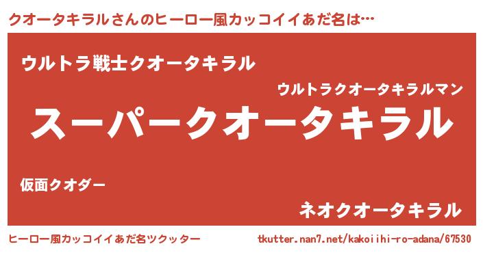 | 男性向けラノベタイトル風あだ名 | 『クオータキラルの憂鬱』 |
