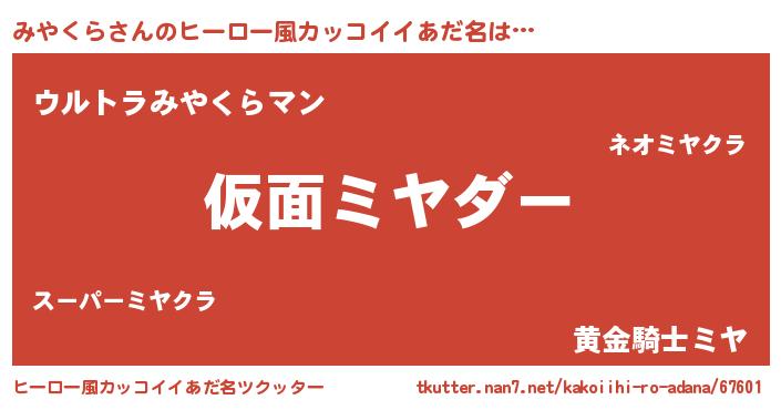 | 男性向けラノベタイトル風あだ名 | 『この素晴らしい世界にみやくらを!』 |