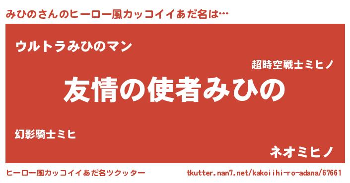 | 男性向けラノベタイトル風あだ名 | 『おまえをオタクにしてやるから、俺をみひのにしてくれ! 』 |