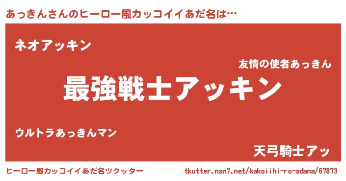 | 男性向けラノベタイトル風あだ名 | 『Re:あっきんから始める異世界生活』 |