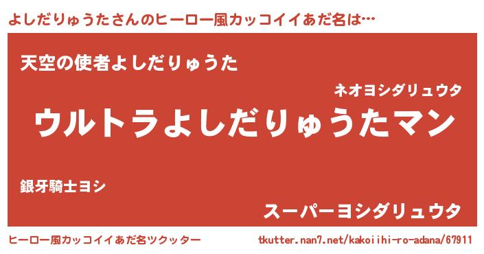 | 男性向けラノベタイトル風あだ名 | 『転生したらよしだりゅうただった件』 |