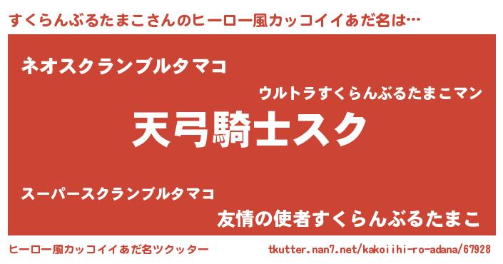 | ヘコむあだ名 | 『すく太郎』『すくらんぶるたまこ(遠い目)』 |