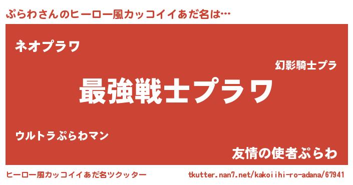 | 伝説のあだ名 | 『古より伝わる勇者ぷらわ』 |