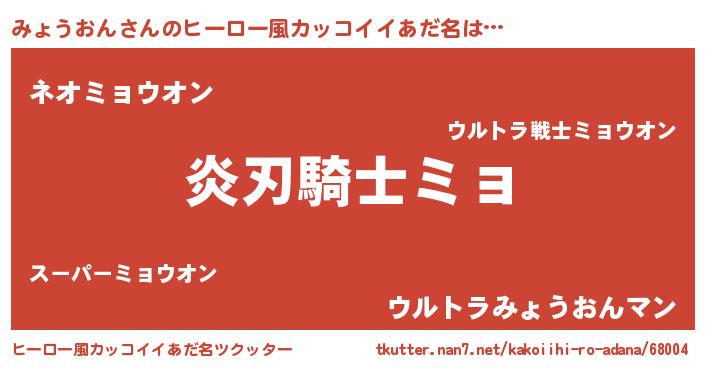 | 男性向けラノベタイトル風あだ名 | 『みょうおん~年齢イコール彼女いない歴の魔法使い~』 |