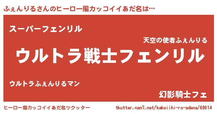 | 意味不明あだ名 | 『自称ふぇんりる』『ペロリンふぇんりる』 |
