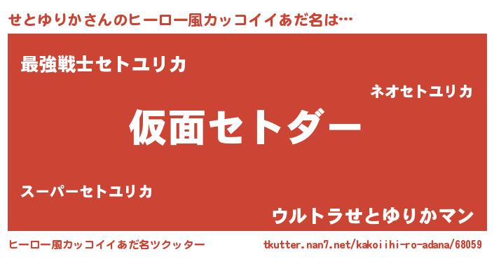 | 恥ずかしいあだ名 | 『セトユリカデラックス』『せとっちょ』 |