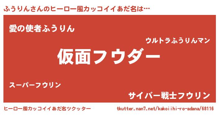 | 男性向けラノベタイトル風あだ名 | 『魔弾の王とふうりん』 |