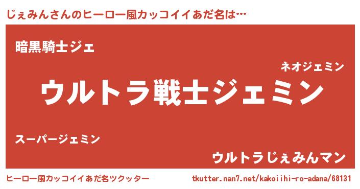 | 男性向けラノベタイトル風あだ名 | 『魔法科高校のじぇみん』 |