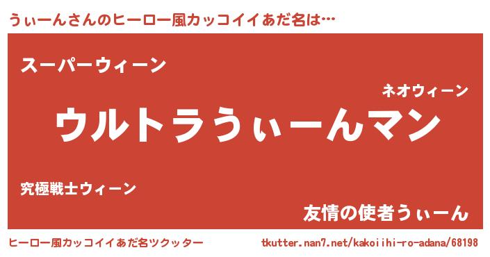 | 男性向けラノベタイトル風あだ名 | 『うぃーんに滅ぼされるだけの簡単なお仕事です』 |