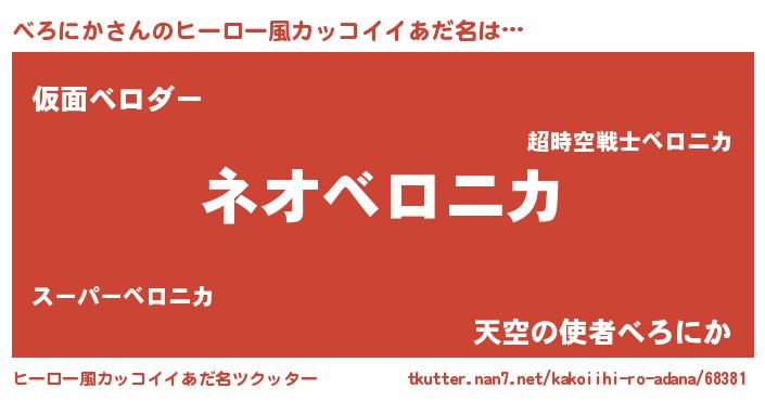 | 男性向けラノベタイトル風あだ名 | 『べろにか~年齢イコール彼女いない歴の魔法使い~』 |