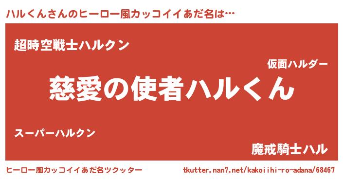 | 男性向けラノベタイトル風あだ名 | 『ノーゲーム・ノーハルクン』 |