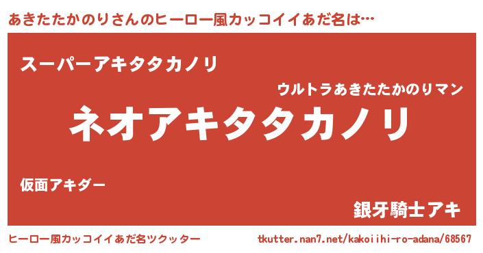 | 男性向けラノベタイトル風あだ名 | 『あきたたかのりという概念が存在しない退屈な世界 』 |