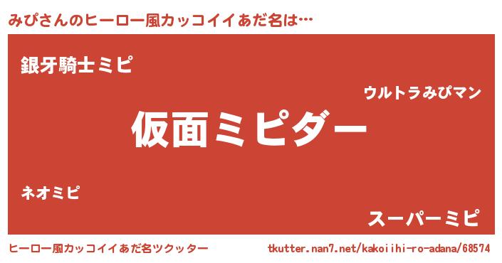 | 男性向けラノベタイトル風あだ名 | 『この素晴らしい世界にみぴを!』 |