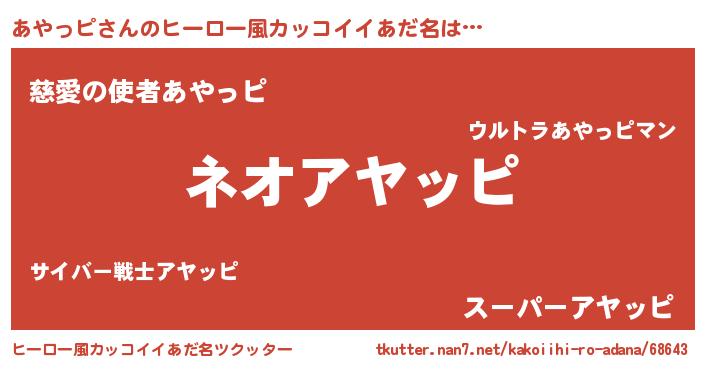 | ヘコむあだ名 | 『あやっピ(笑)』『あやにー』『豆乳』 |