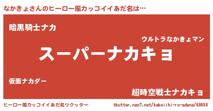 | 男性向けラノベタイトル風あだ名 | 『なかきょの憂鬱』『魔弾の王となかきょ』 |