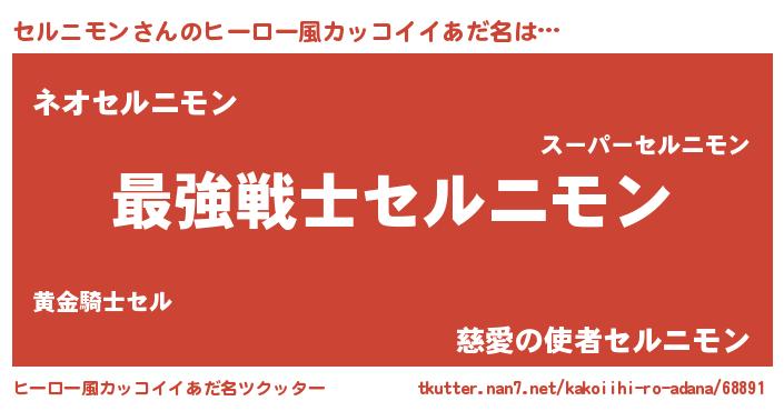 | 男性向けラノベタイトル風あだ名 | 『Re:セルニモンから始める異世界生活』 |