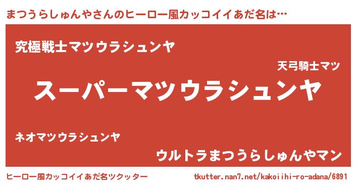 | 男性向けラノベタイトル風あだ名 | 『まつうらしゅんやの憂鬱』 |