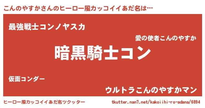 | 胡散臭い通販商品みたいなあだ名 | 『信頼と実績のサプリメント…その名も「こんのやすか」』 |
