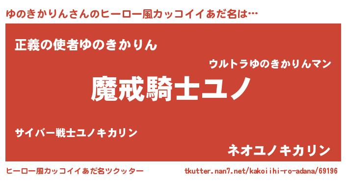 | ポケモン風あだ名 | 『ヒユノキカリン』『ユックウザ』 |