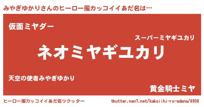 | 女子向けラノベタイトル風あだ名 | 『異世界で失敗しない100のみやぎゆかり』 |