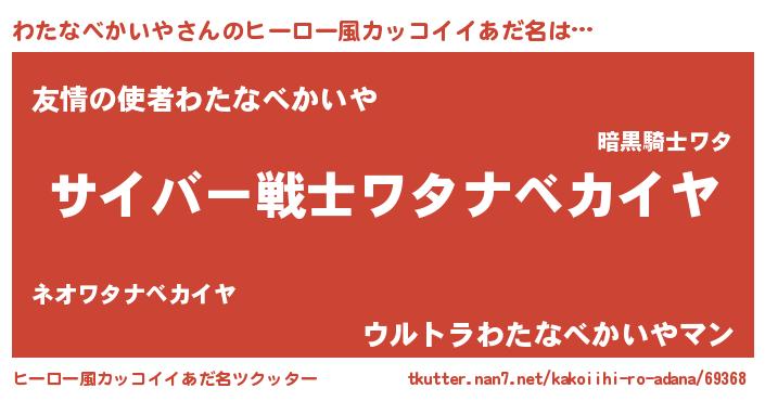 | 男性向けラノベタイトル風あだ名 | 『Re:わたなべかいやから始める異世界生活』 |