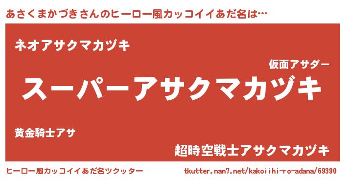 | ヘコむあだ名 | 『あさふぇ~』『あさくまかづき(震え声)』 |