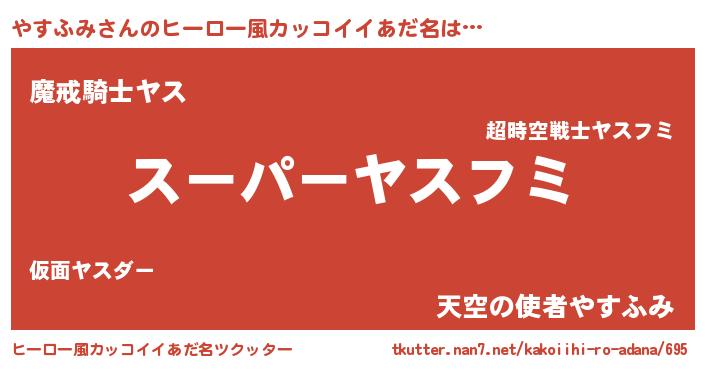 | ファンタジー風あだ名 | 『ヤスフェル』『ユリヤスヴァット』 |