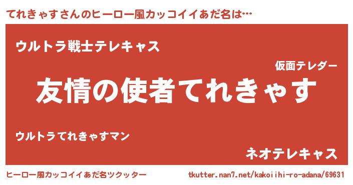 | ヘコむあだ名 | 『てれきゃす(笑)』『牛乳』『てれを』 |