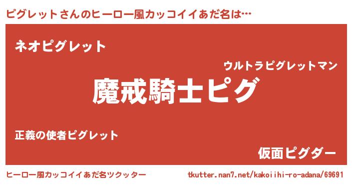| 胡散臭い通販商品みたいなあだ名 | 『信頼と実績のサプリメント…その名も「ピグレット」』 |