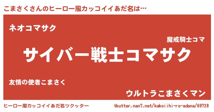 | 男性向けラノベタイトル風あだ名 | 『転生したらこまさくだった件』 |