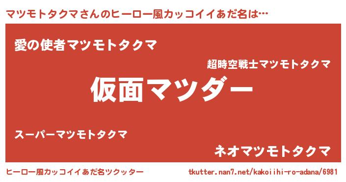 | ヘコむあだ名 | 『マツモトタクマ(苦笑)』『マツにー』 |