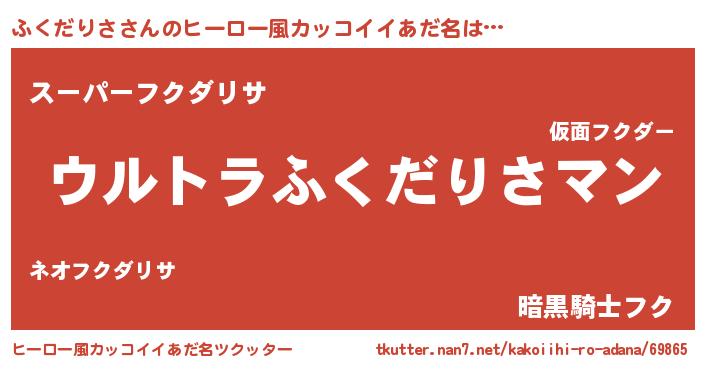 | 男性向けラノベタイトル風あだ名 | 『うちの娘の為ならば、俺はもしかしたらふくだりさも倒せるかもしれない。』 |