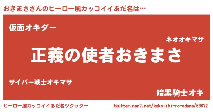 | 男性向けラノベタイトル風あだ名 | 『おまえをオタクにしてやるから、俺をおきまさにしてくれ! 』 |