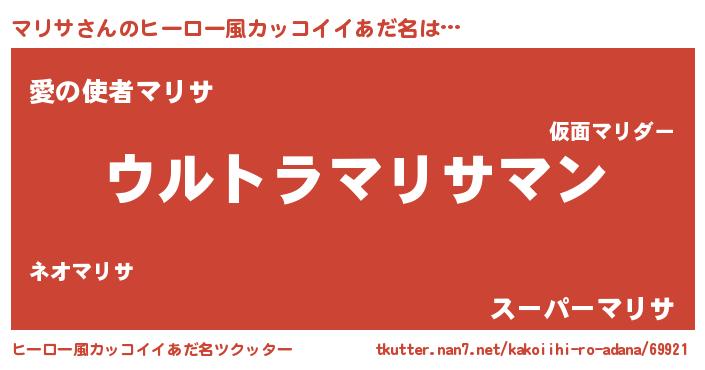 | 男性向けラノベタイトル風あだ名 | 『やはりマリサの青春ラブコメはまちがっている 』 |
