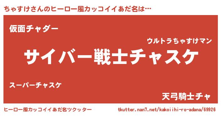 | 男性向けラノベタイトル風あだ名 | 『Re:ちゃすけから始める異世界生活』 |
