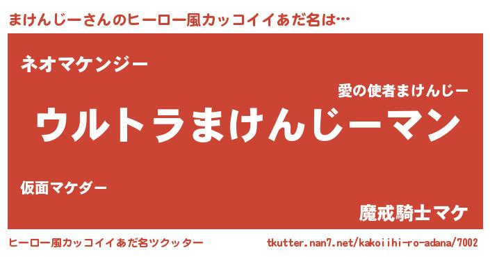 | 男性向けラノベタイトル風あだ名 | 『まけんじーに滅ぼされるだけの簡単なお仕事です』 |