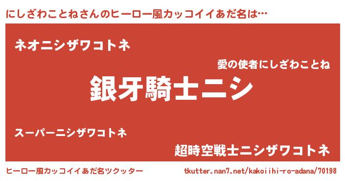 | ヘコむあだ名 | 『にしお』『にしざわことね(笑)』 |