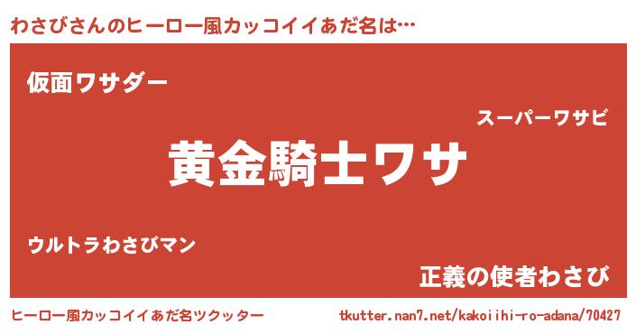 | 男性向けラノベタイトル風あだ名 | 『ワサビスレイヤー』『魔弾の王とわさび』 |