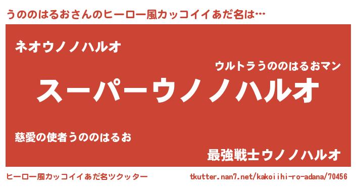 | 男性向けラノベタイトル風あだ名 | 『うののはるおの憂鬱』 |