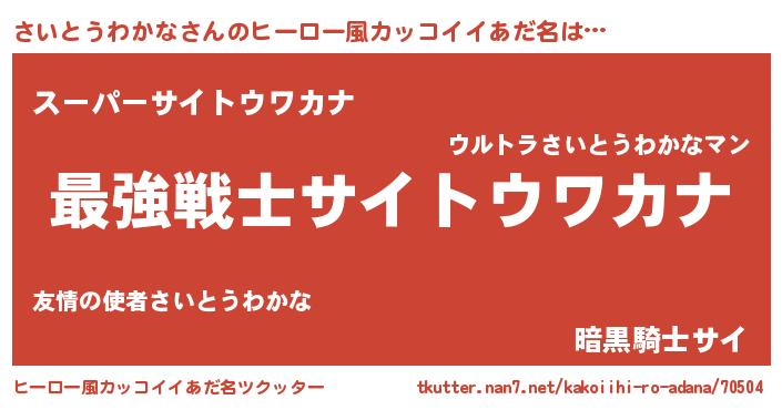 | 男性向けラノベタイトル風あだ名 | 『Re:さいとうわかなから始める異世界生活』 |