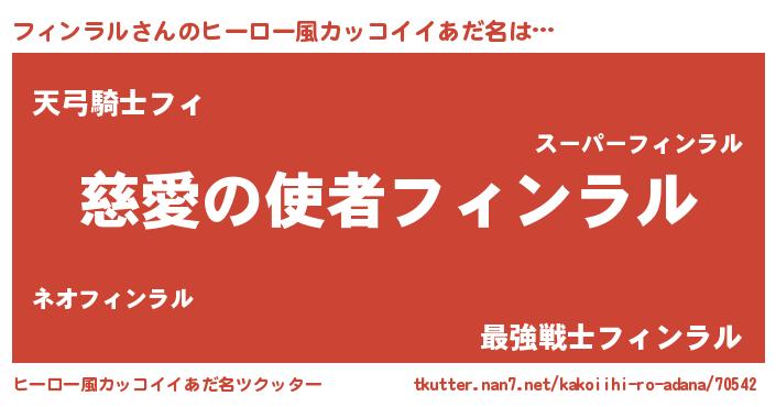 | 男性向けラノベタイトル風あだ名 | 『ノーゲーム・ノーフィンラル』 |