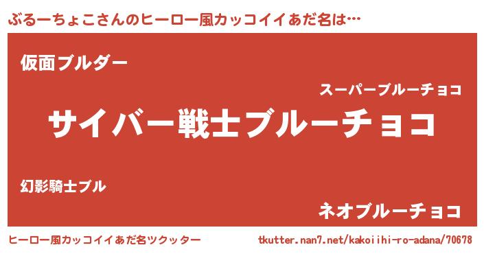 | 男性向けラノベタイトル風あだ名 | 『ぶるーちょこに滅ぼされるだけの簡単なお仕事です』 |