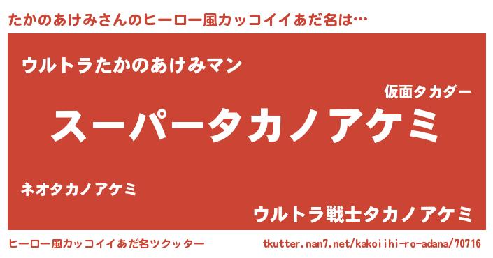 | 男性向けラノベタイトル風あだ名 | 『転生したらたかのあけみだった件』 |