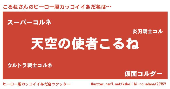 | 女子向けラノベタイトル風あだ名 | 『こるねの玉の輿計画!』『こるね恋絵巻』 |