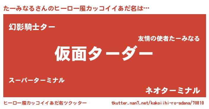 | ヘコむあだ名 | 『たー太郎』『たーみなる(笑)』 |