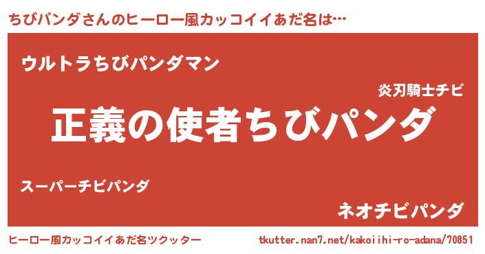 | 男性向けラノベタイトル風あだ名 | 『チビパンダスレイヤー』 |