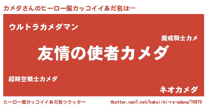| 男性向けラノベタイトル風あだ名 | 『おまえをオタクにしてやるから、俺をカメダにしてくれ! 』 |