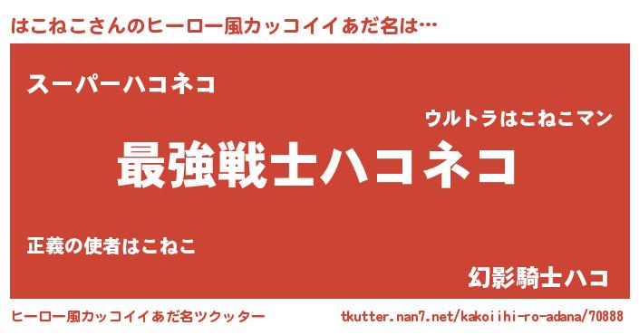 | 男性向けラノベタイトル風あだ名 | 『うちのはこねこが世界を掌握している!』 |